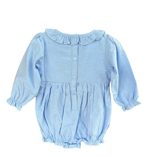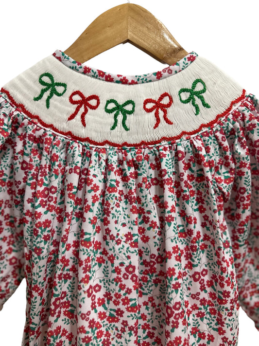 Girl’s Christmas Floral Bow Hand Smocked Bubble | Holiday Toddler Outfit