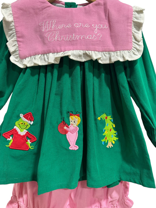 Mr. Mean One Christmas Corduroy Dress & Bloomer Set – Girls Holiday Outfit