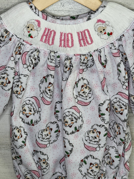 Ho Ho Ho Hand Smocked Santa Print Girls Bubble