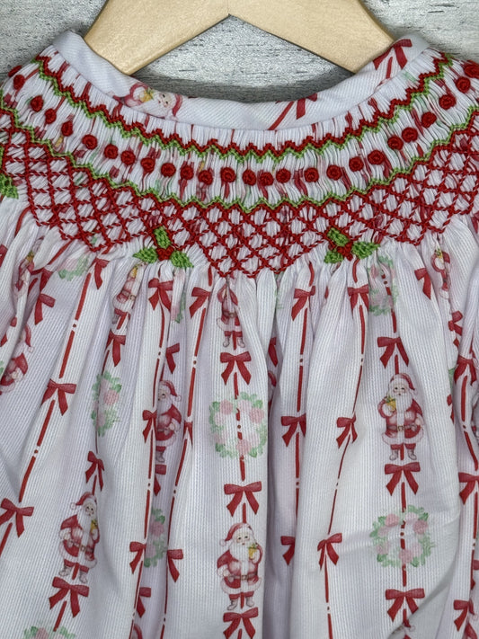 Christmas Hand Smocked Girls Santa & Bow Bubble