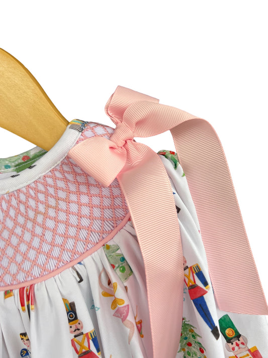 Hand Smocked Nutcracker Bubble – Holiday Girls Outfit with Shoulder Bows