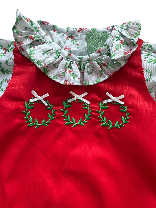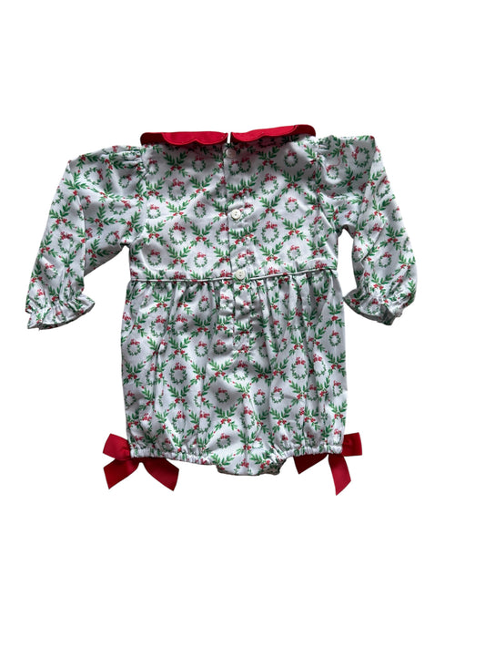 Girl’s Hand Smocked Wreath Christmas Bubble – Holiday Outfit