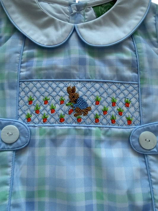 Hand Smocked Peter Rabbit Boys Plaid Bubble Romper