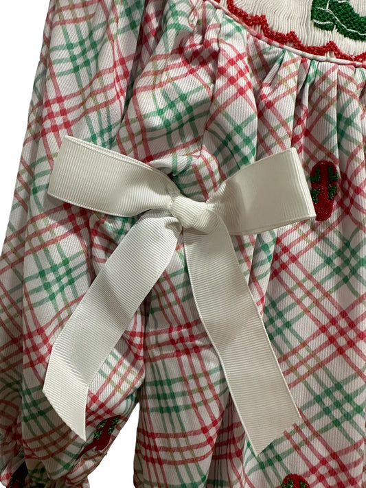 Christmas Boot Girls Hand Smocked Plaid Bloomer Set