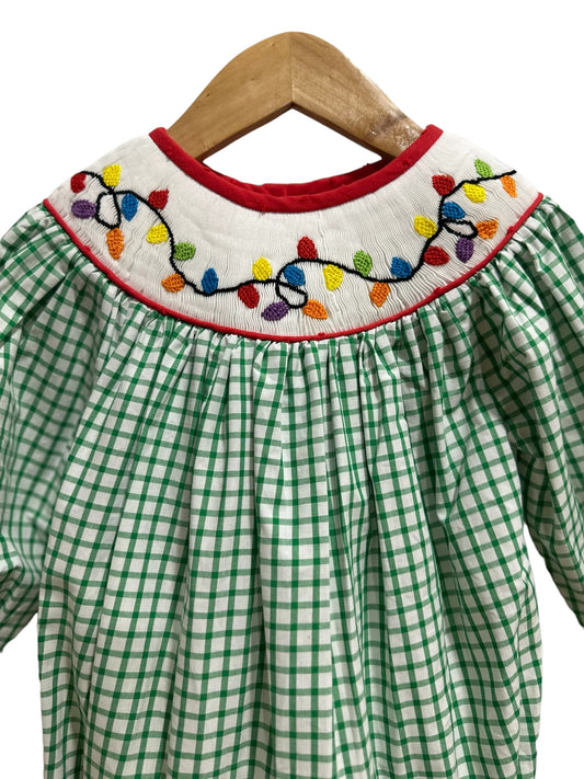 Christmas Hand Smocked Lights Bubble – Green Gingham Baby Bubble | Sister Matching Bloomer Available