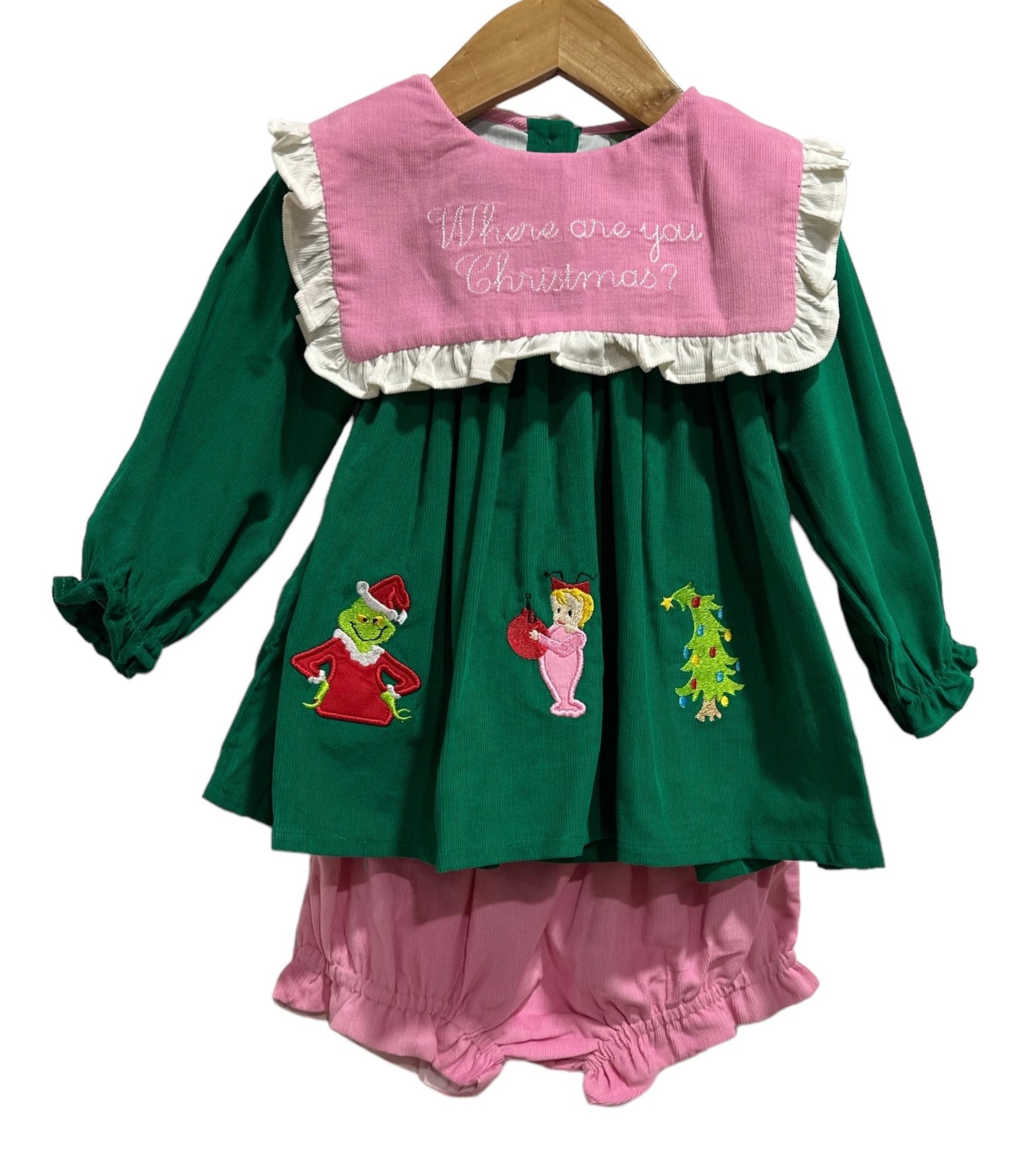 Mr. Mean One Christmas Corduroy Dress & Bloomer Set – Girls Holiday Outfit