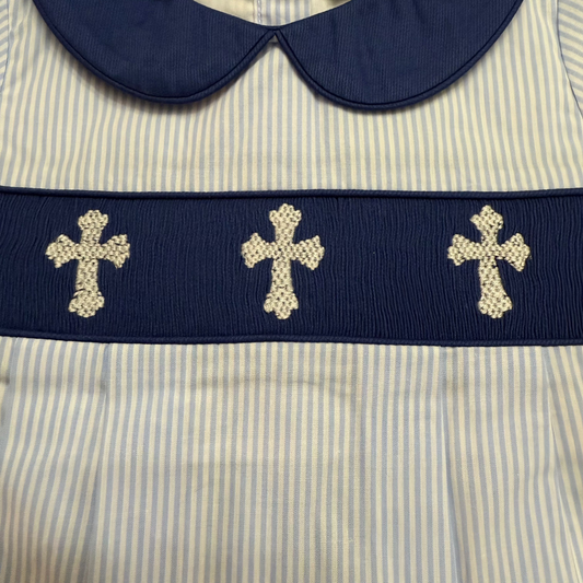 Easter Hand-Smocked Cross Boys Bubble Romper