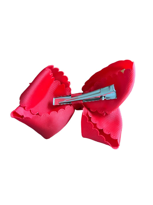 Red Scalloped Edge Grosgrain Hair Bow