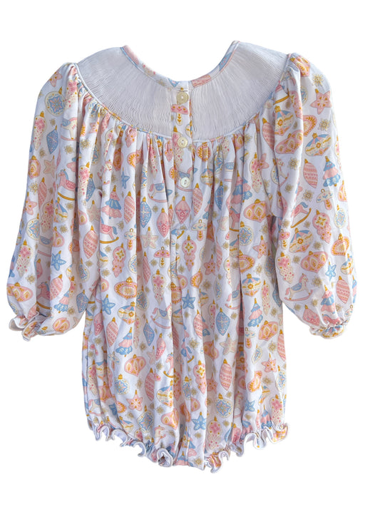 Girl’s Hand Smocked Wreath Christmas Bubble – Holiday Outfit
