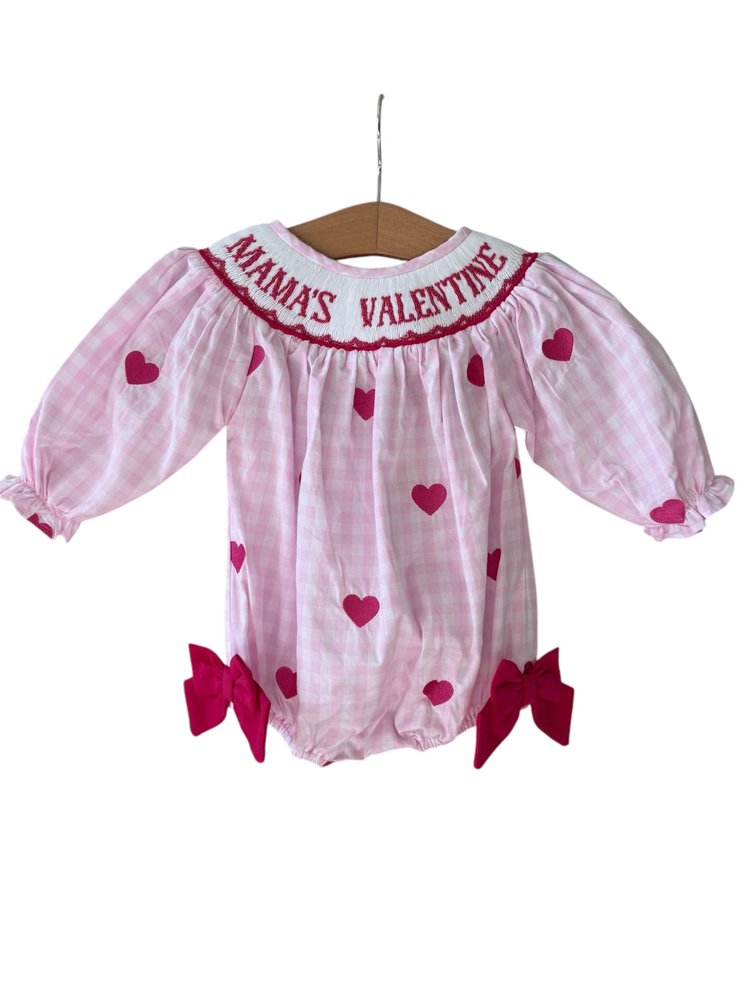 Ready to Ship-Valentine Bows & Hearts Bubble | Hand Smocked Red Bubble with Gingham Bows