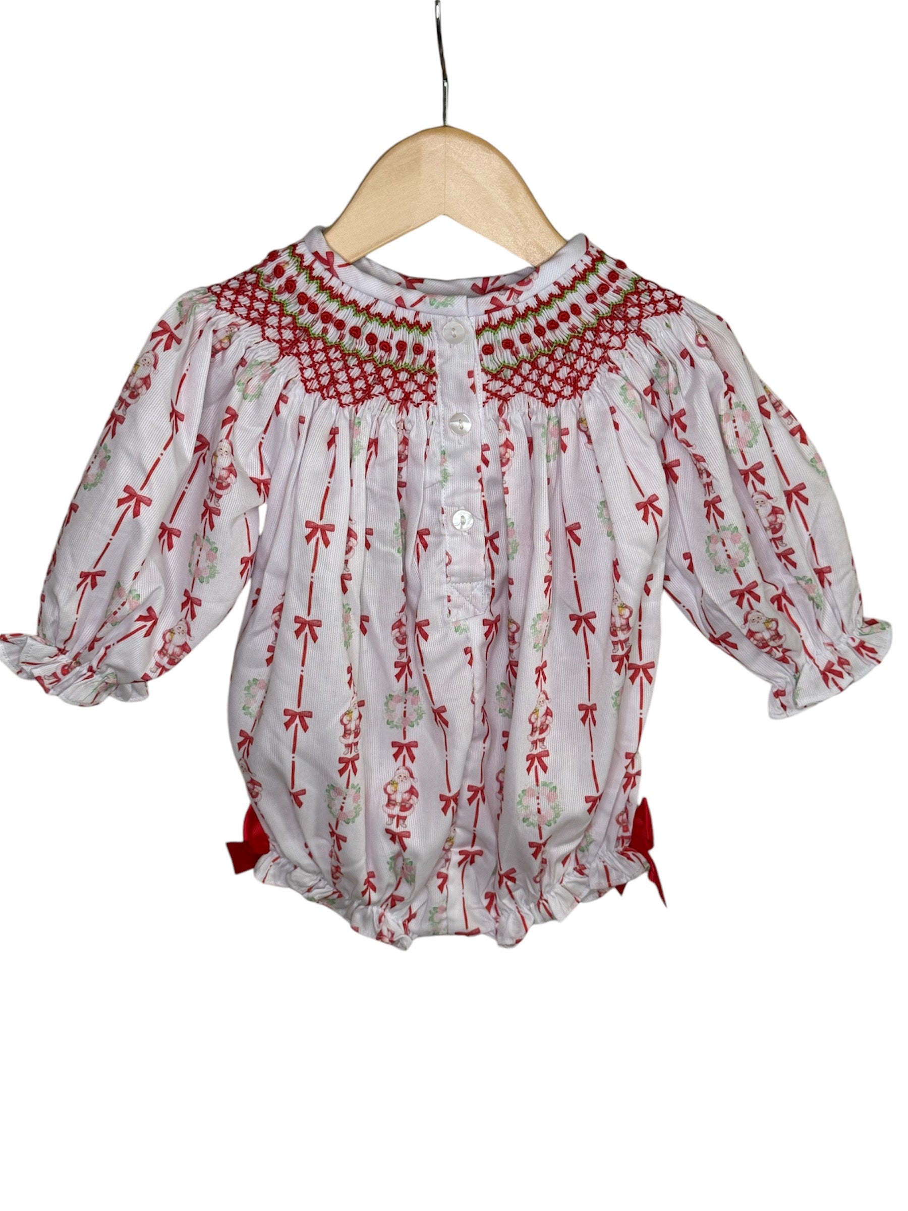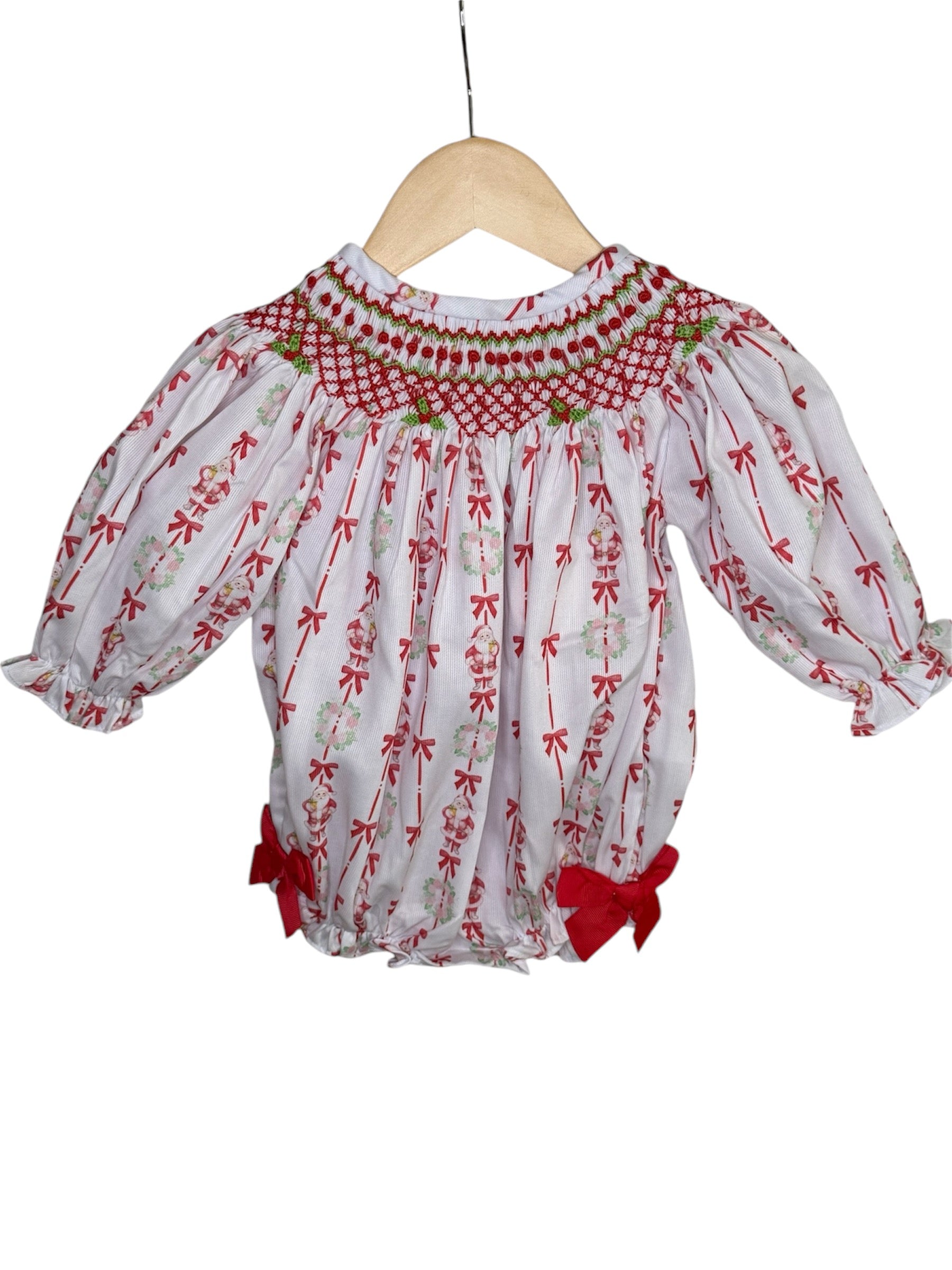 Christmas Hand Smocked Girls Santa & Bow Bubble