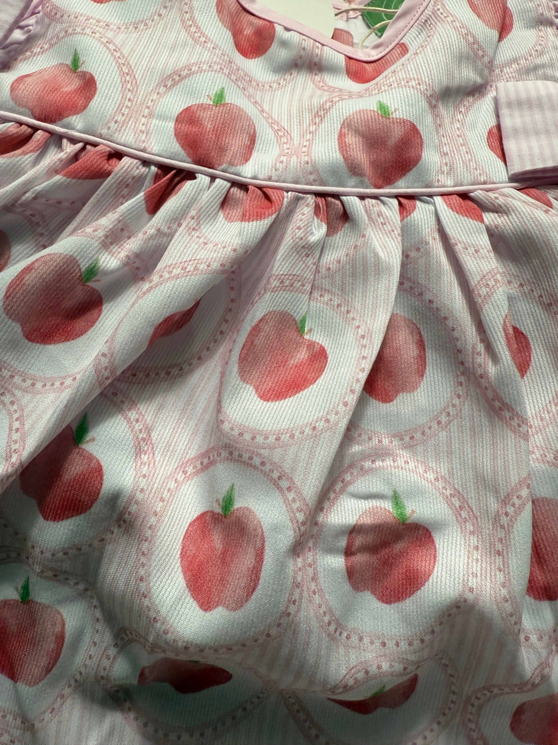 Toddler Girls Apple Picking Outfit - Pink Apple Print Back To School Dress & Bloomers