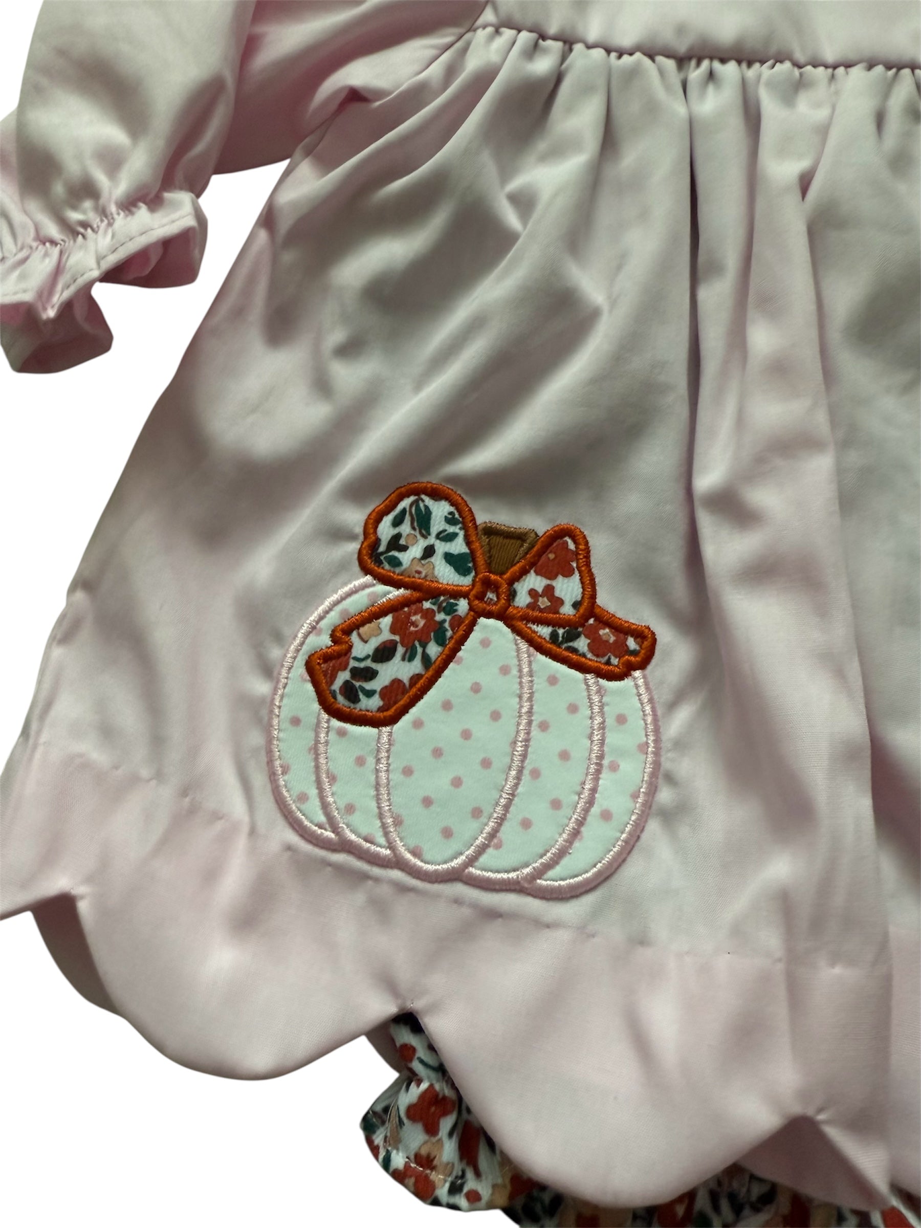 Pink & Floral Appliqué Pumpkin Girl’s Bubble – Fall & Thanksgiving Outfit