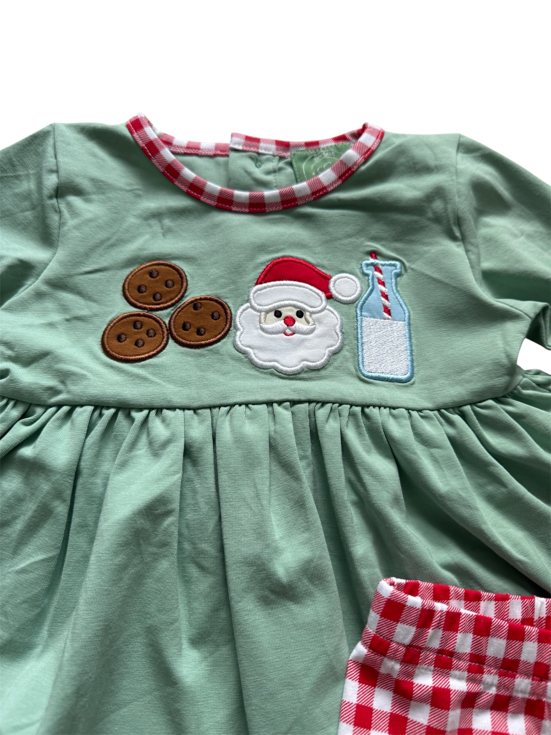 Cozy, festive, and picture-perfect, this Girl’s Santa, Milk & Cookies 2-Piece Outfit is made for Christmas fun. Designed for comfort and style, this boutique holiday set includes: