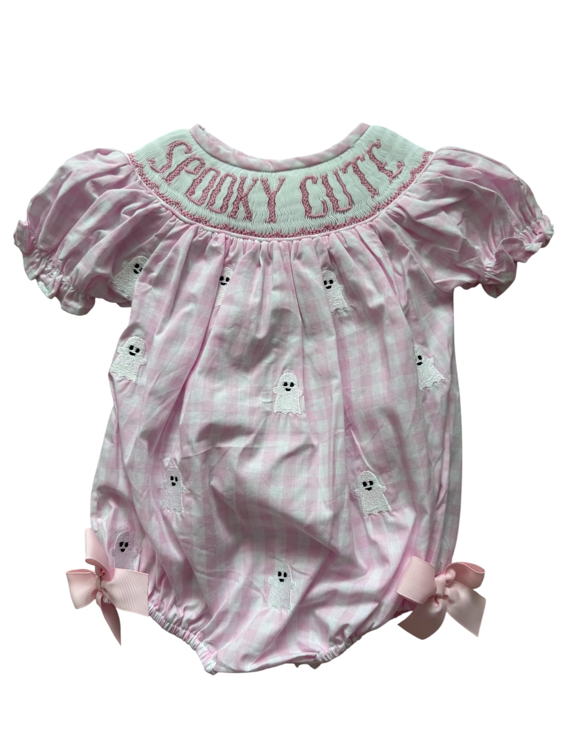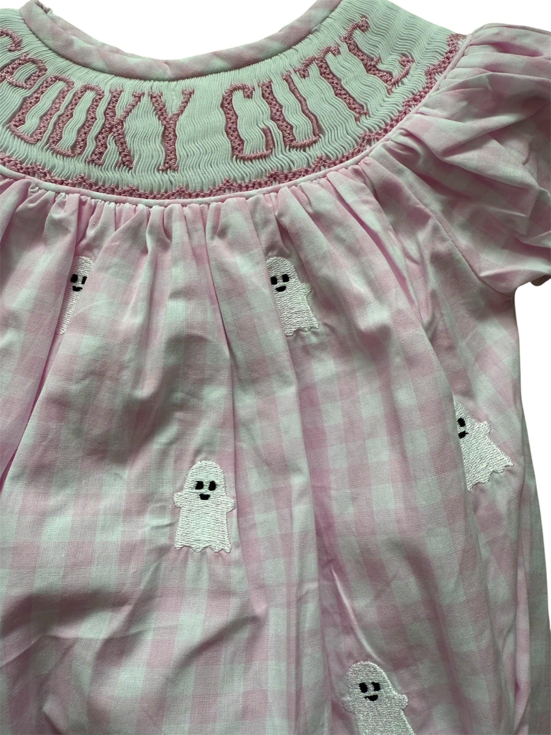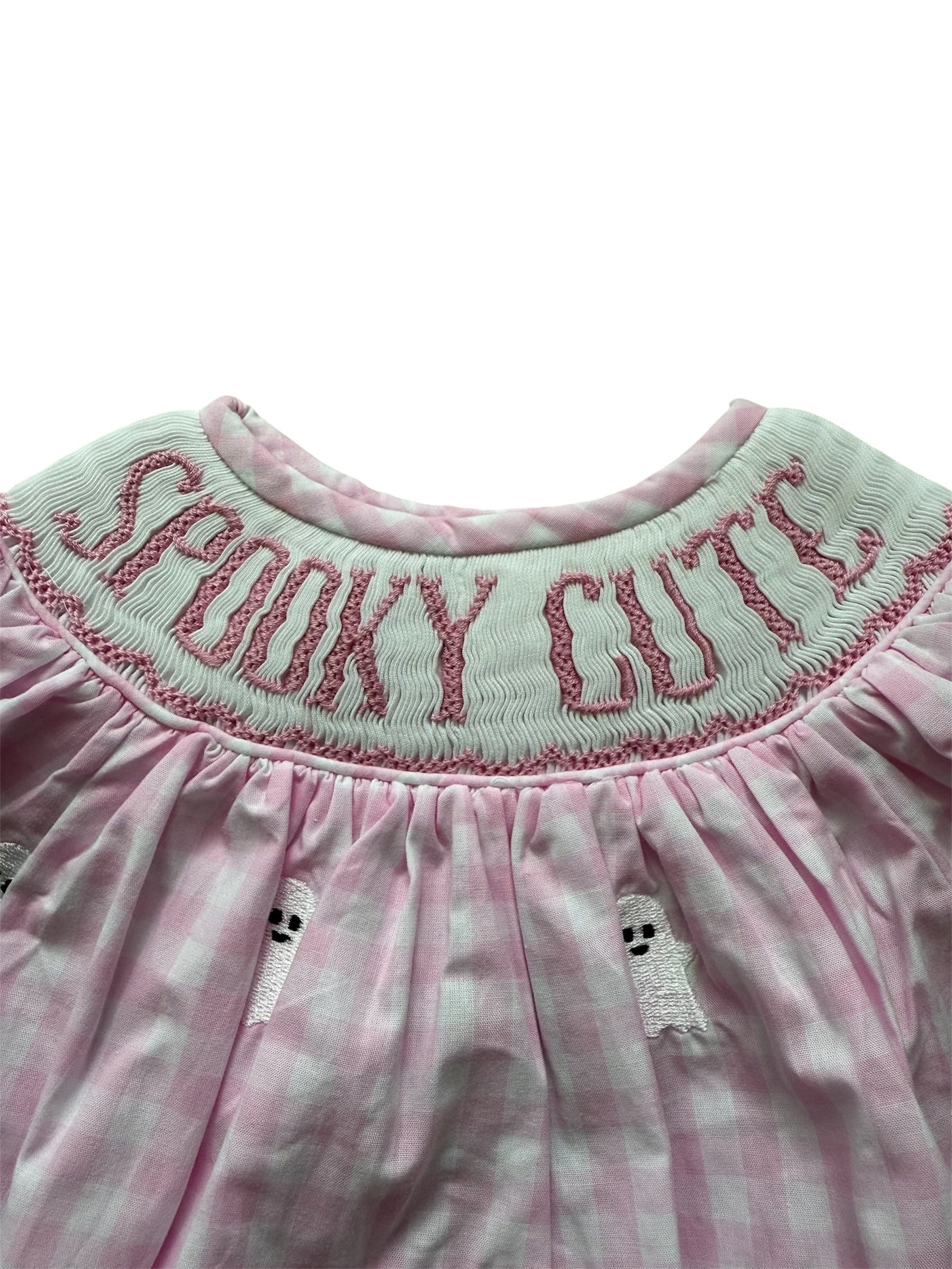 Pink Spooky Cute Hand Smocked & Embroidered Girls Ghost Bubble