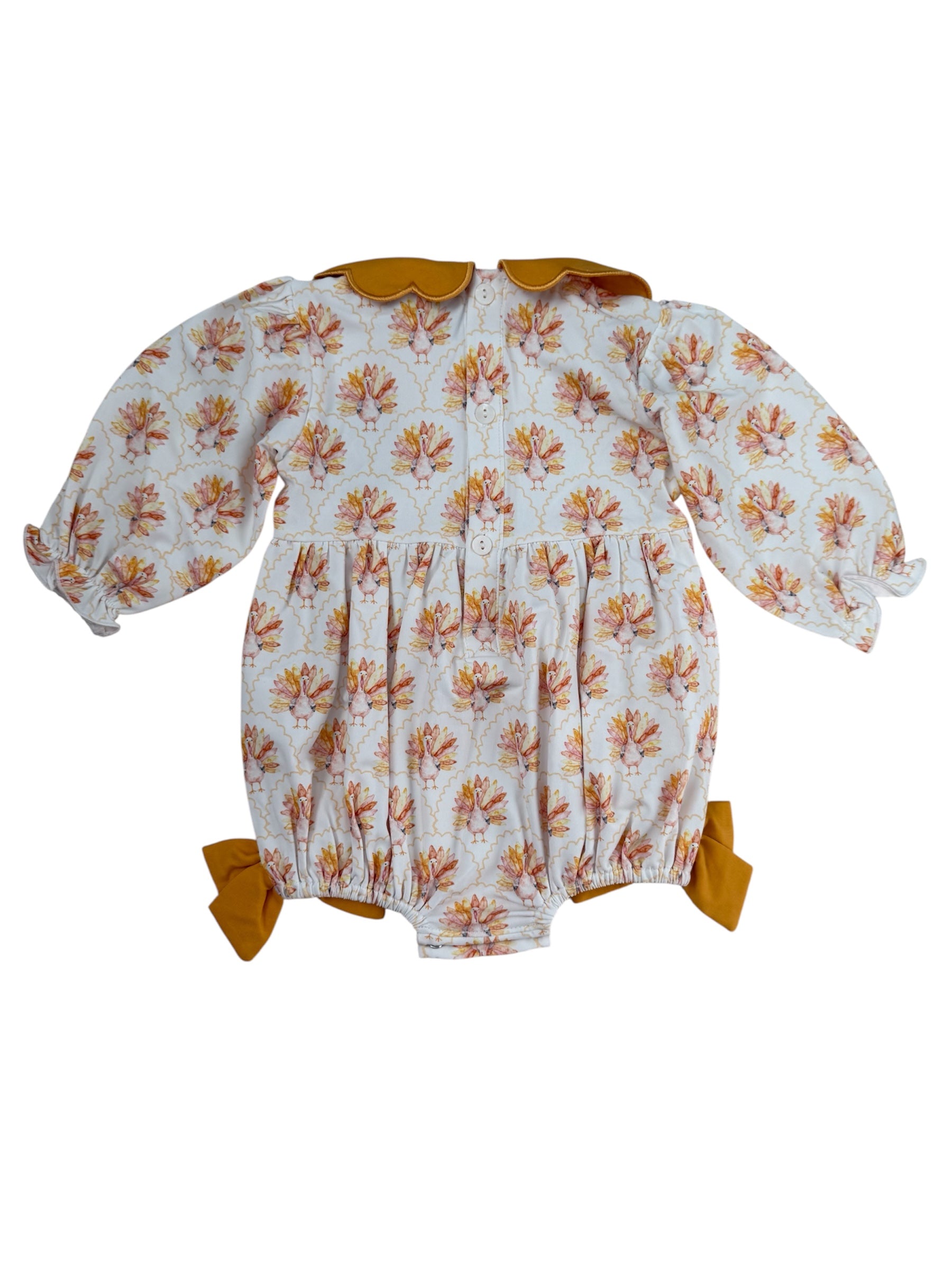 Turkey Print Girls Thanksgiving Bubble | Baby & Toddler Holiday Outfit