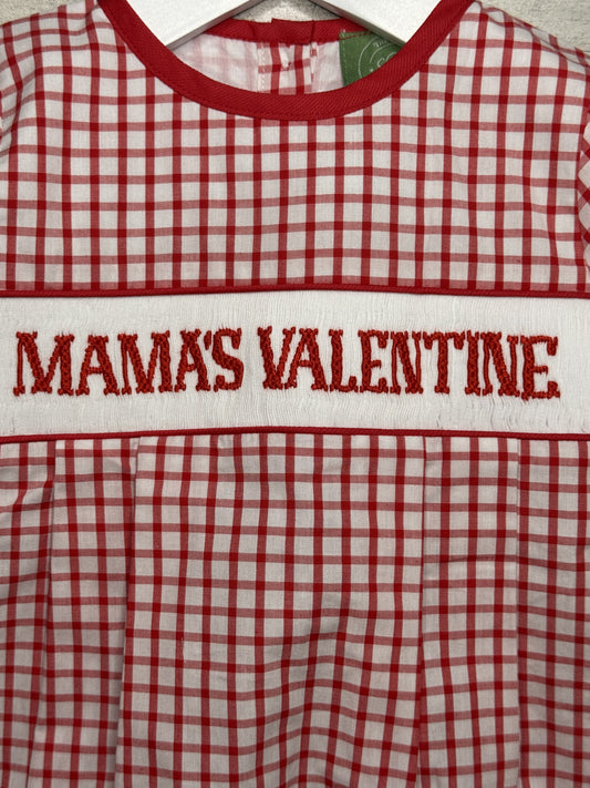 Mama’s Valentine Boy’s Hand Smocked Bubble – Red & White Plaid