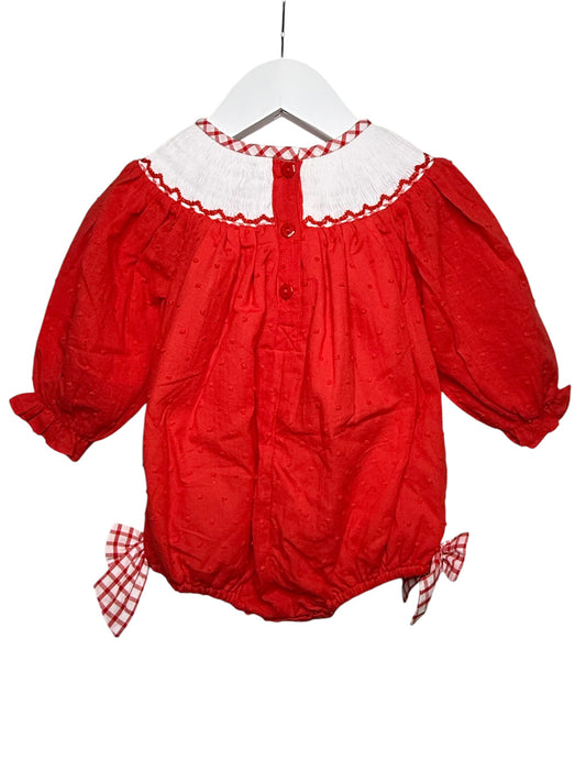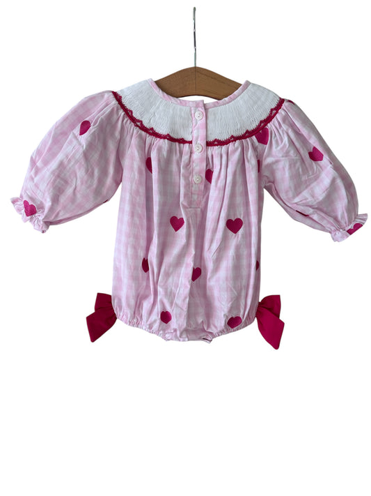 Ready to Ship-Valentine Bows & Hearts Bubble | Hand Smocked Red Bubble with Gingham Bows