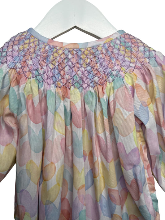 Ready to Ship-Valentine Pastel Heart Print Smocked Bubble | Hand Smocked Baby & Toddler Outfit