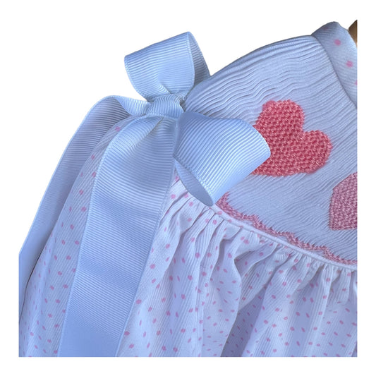 Ready to Ship-Valentine Smocked Dress | Hand Smocked Girls Dress with Heart Details